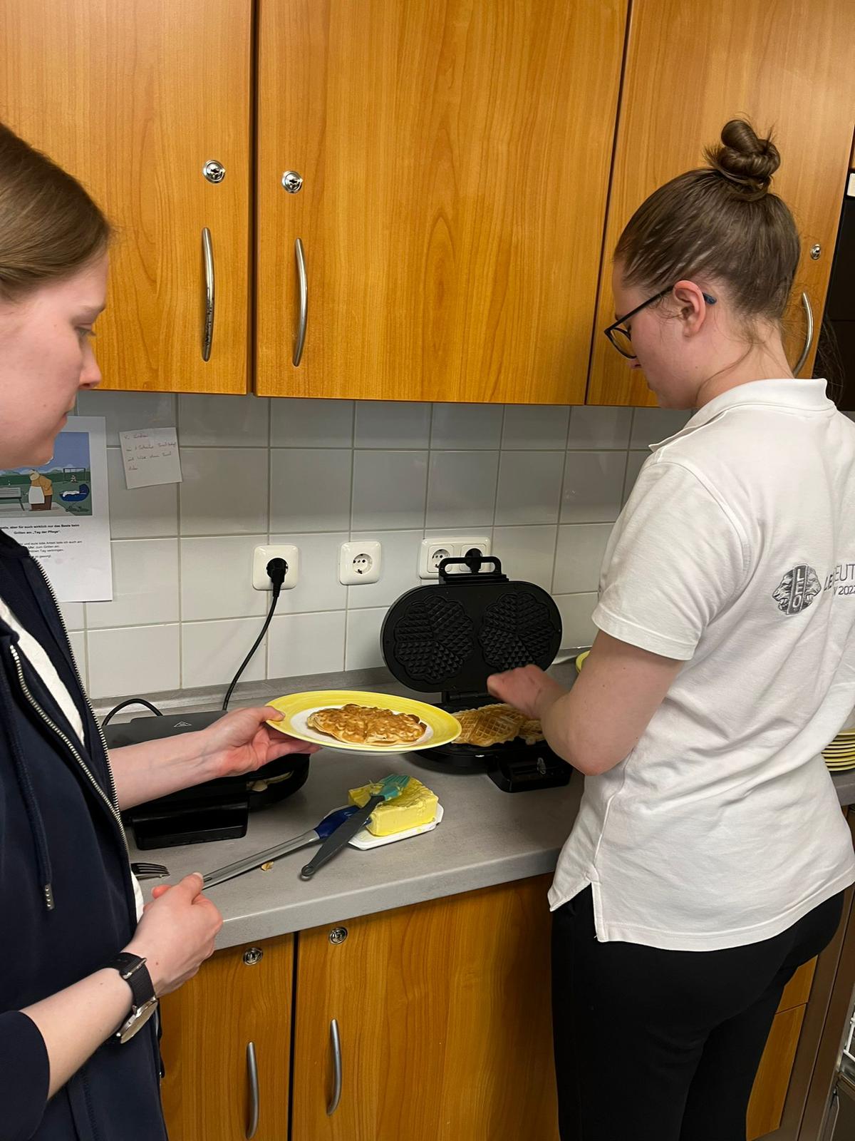 Als krönender Genuss gab es frisch gebackene Waffeln, die direkt vor Ort zubereitet wurden. Dazu wurden warme Kirschen und eine Kugel Vanilleeis serviert, sodass die Nachspeise nicht nur süß, sondern auch erfrischend daherkam.